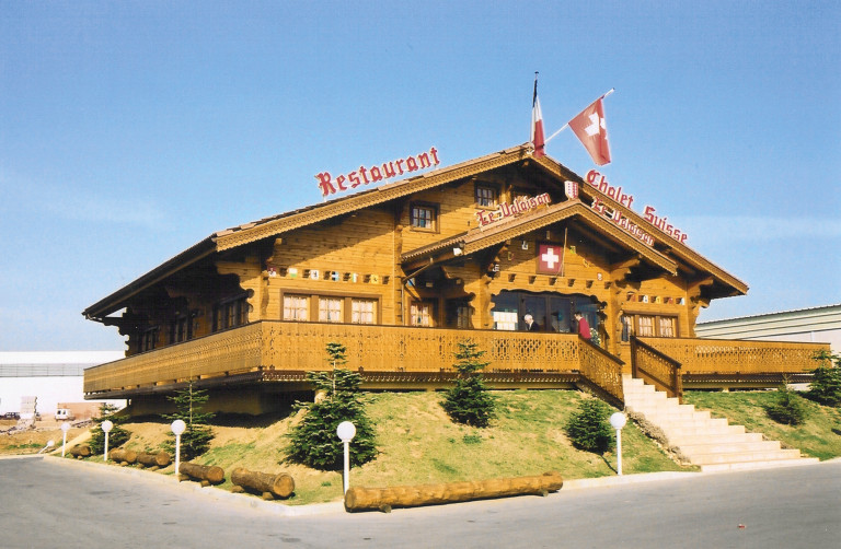 Le restaurant « Chalet suisse », situé à Montpellier dans le sud de la France, constitué d’épais madriers de 140 x 160 mm, ne passe pas inaperçu!